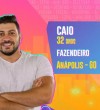 O participante, de 32 anos, é fazendeiro. Desde que o pai se aposentou, Caio está à frente da fazenda que tem lavoura de soja e milho, em Anápolis, no interior de Goiás. Ele é participante do grupo Pipoca.